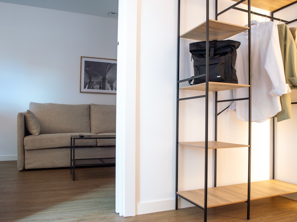 Nuestro Apartamento Superior ofrece privacidad gracias a la puerta que separa el salón de la habitación. Cálido y bien distribuido, combina comodidad y practicidad, con todos los amenities incluidos para una estancia agradable. Muy recomendable para viajes en familia.